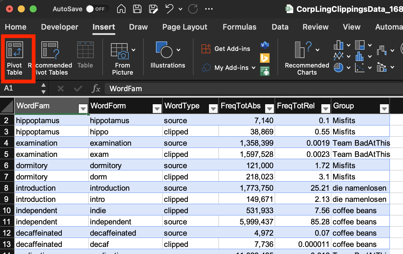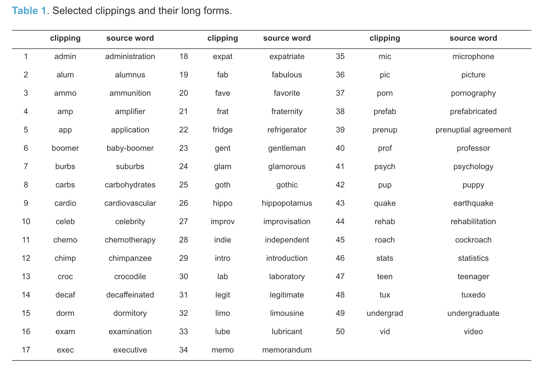 - Compare the source word (e.g., brother) with the clipped form (e.g., bro).