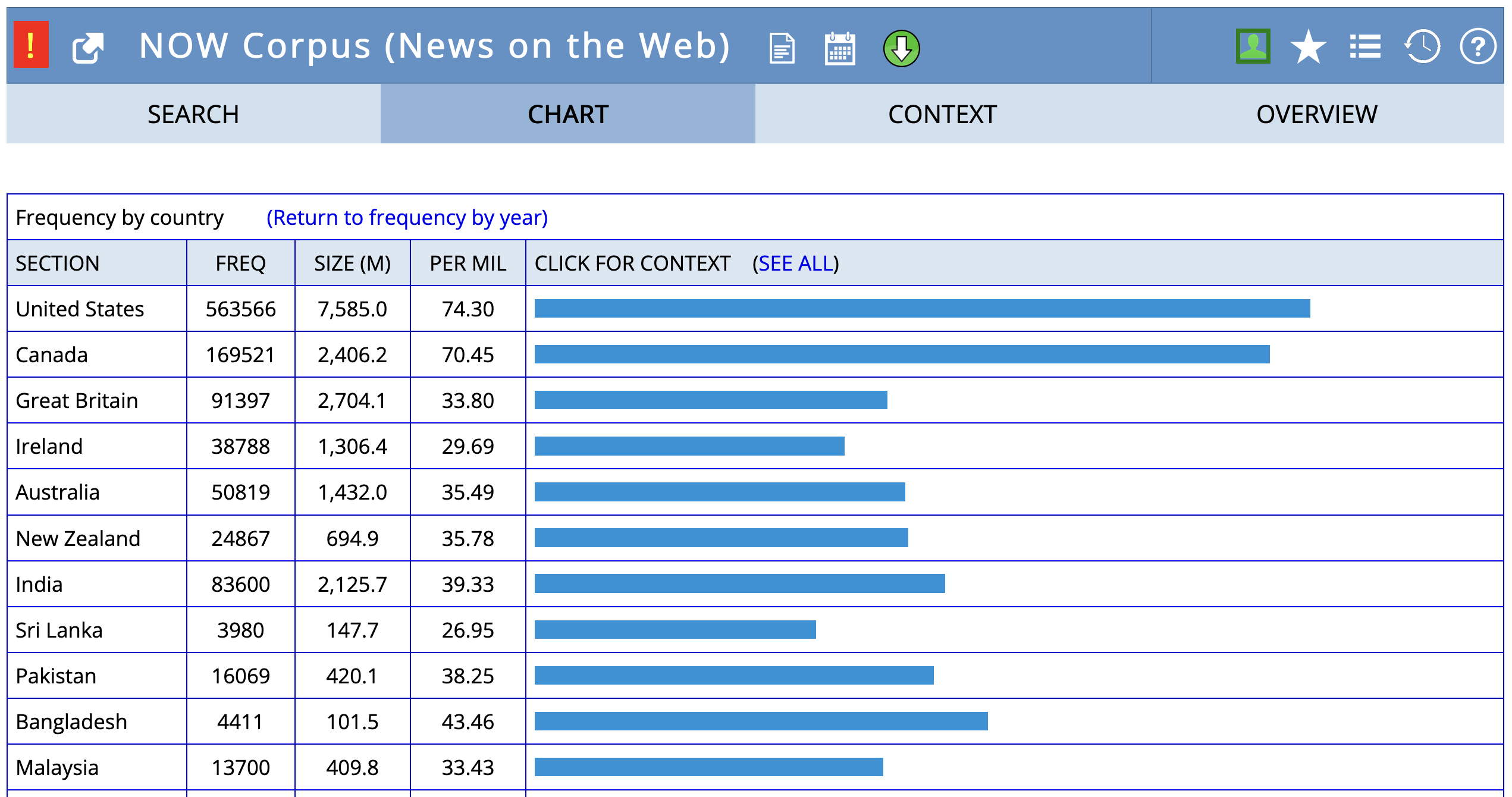 Frequency of fall vs. autumn by country in the NOW corpus.