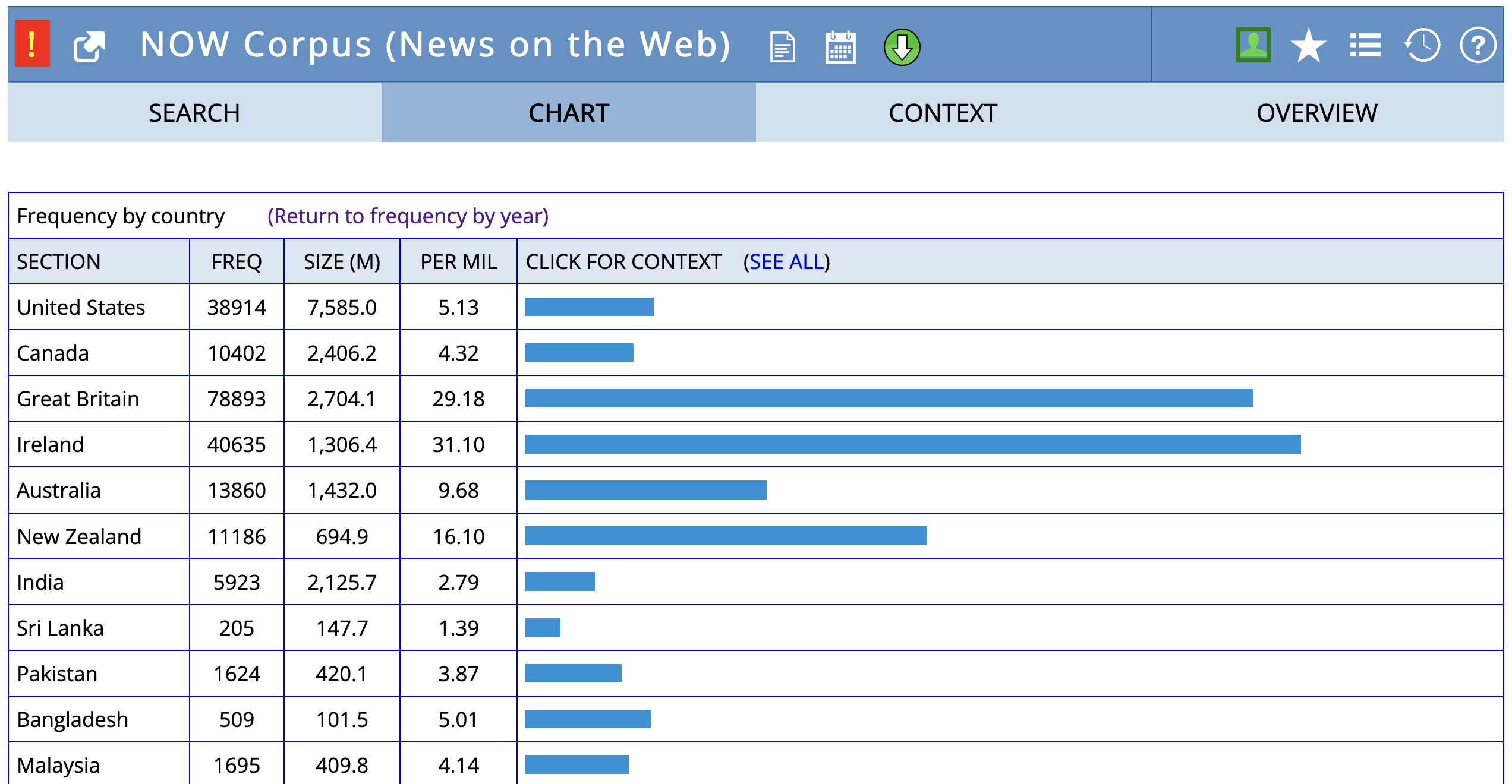 Sketch Engine: Gutenberg English 2020, EEBO, enTenTen20, English Trends