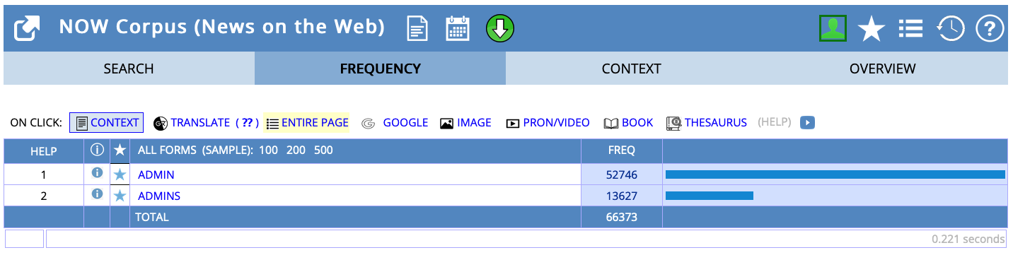 Query ADMIN in the NOW corpus