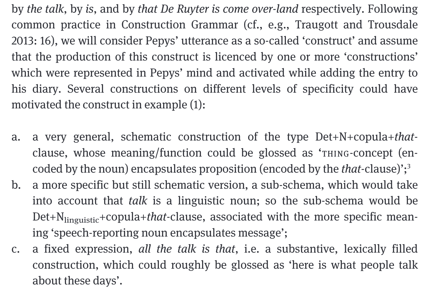 | Syntax | Constructions, CQL patterns | Frequency analysis, entrenchment measures | Usage-based grammar |